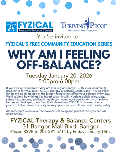 Free Community Education Series-Why Am I Feeling Off-Balance? -Presented by FYZICAL + Thriving Proof