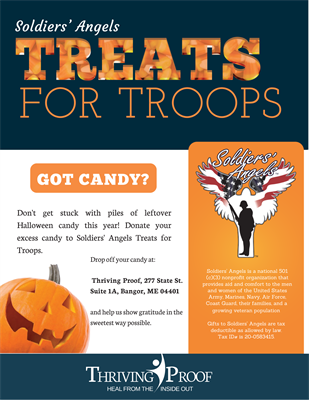 Don't get stuck with piles of leftover Halloween candy this year! Donate your excess candy to Soldiers' Angels Treats for Troops.